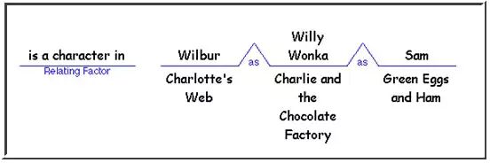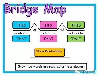 这是一种主要用来进行类比和类推的图。在桥型横线的上面和下面写下具有相关性的一组事物,然后按照这种相关性,列出更多具有类似相关性的事物。基本形状是这样的: