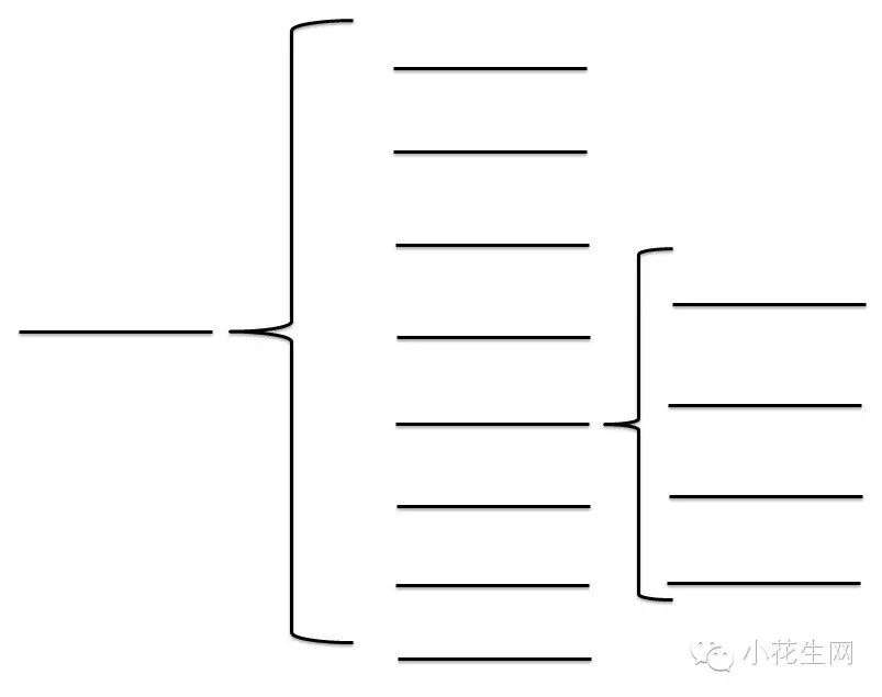 主要用于分组或分类的一种图。主题,一级类别,二级类别,等等。可以帮孩子用这种图来整理归纳一些知识。基本形状是这样的: