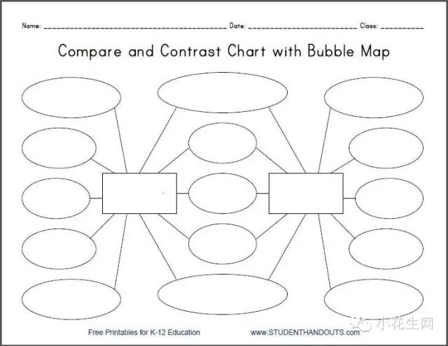 Maps)-这也是一件分析“神器”,它的妙处在于,可以帮孩子对两个事物做比较和对照,找到它们的差别和共同点。这是基本形状: