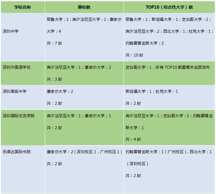 2020年深国交、梅沙、深圳贝塞思、讯得达等藤校、美国TOP10录取比拼!