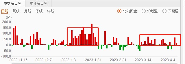 资金动态:年内北向资金保持流入,1月份有一波流入高峰,2月至3月上旬因汇率波动放缓,3月13日以来,海外资金流入增多,3月累计净买入300多亿元。4月6日-4月10日,因香港耶稣受难节、香港复活节假日北向资金暂停交易,4月11日恢复交易,预计逐步流入的趋势不变。