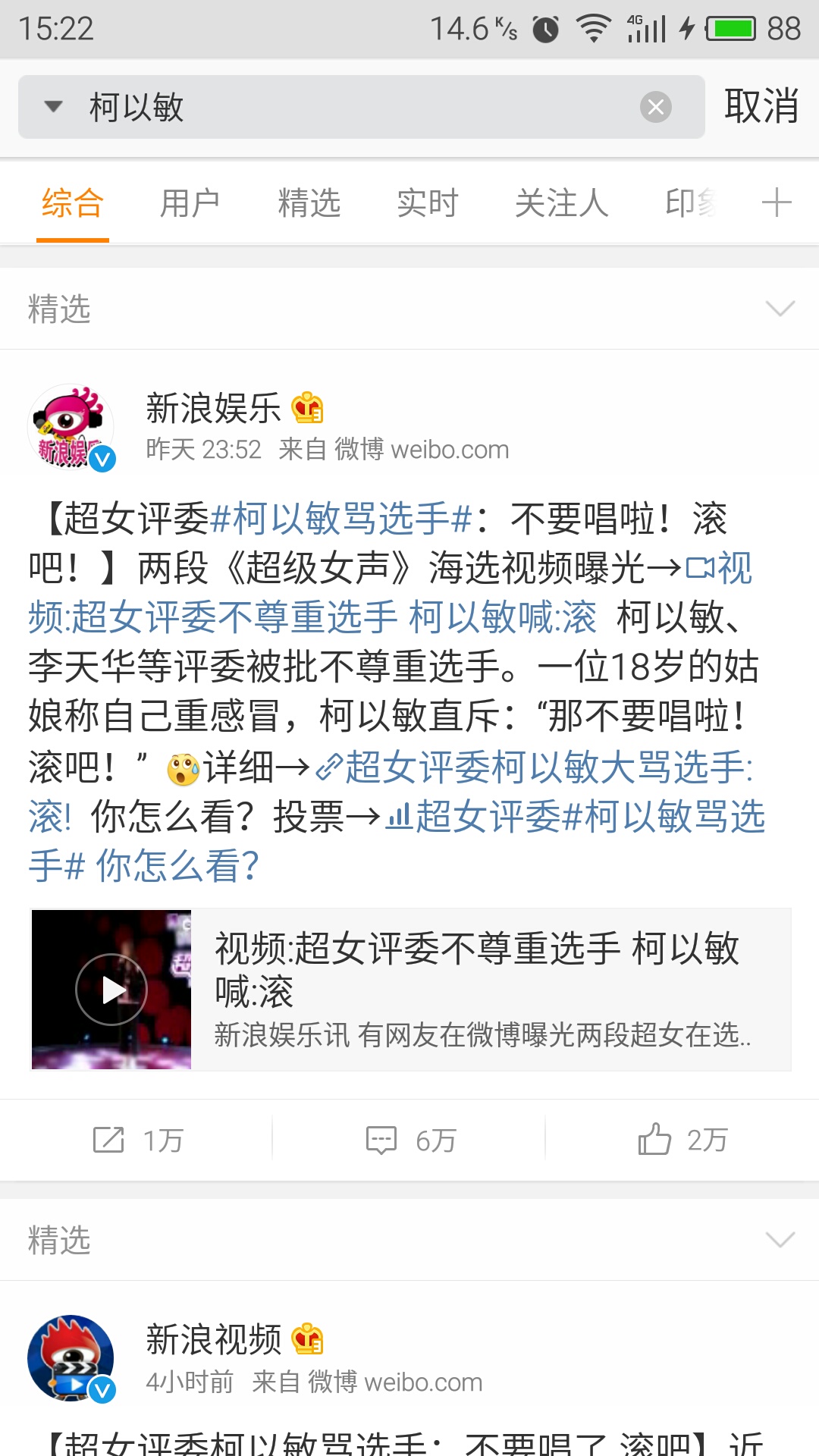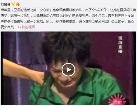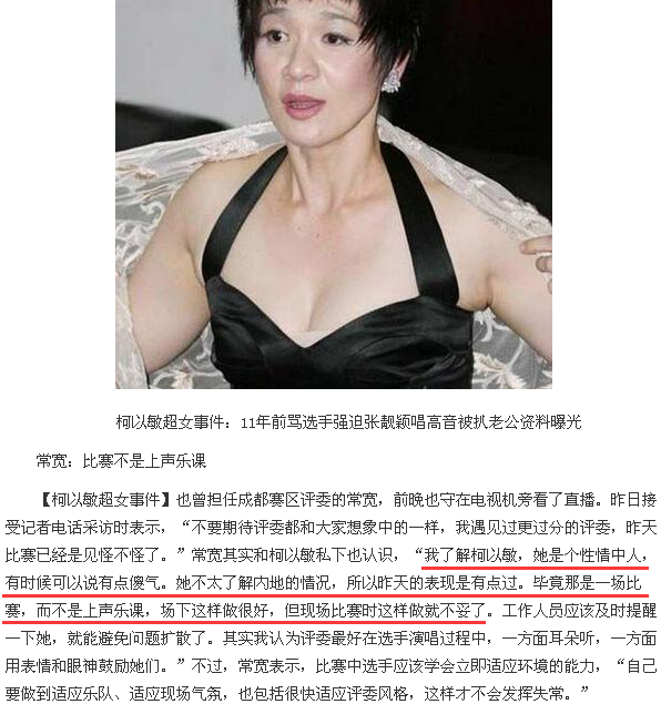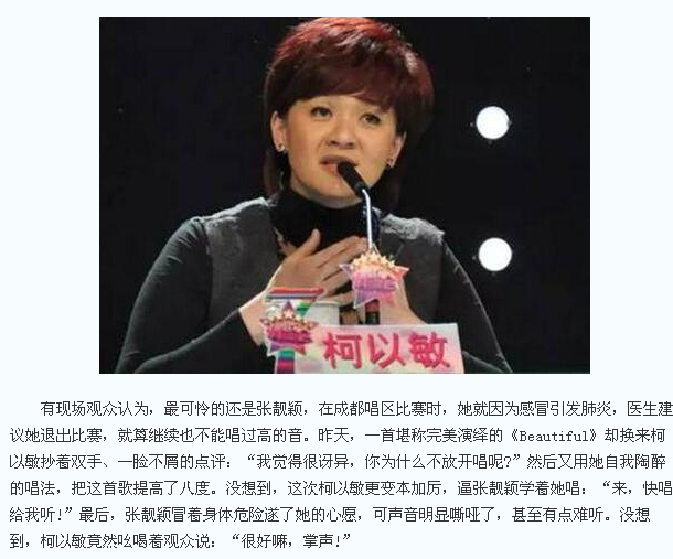 一段超女评委柯以敏,在选拔现场态度傲慢的打断选手,喊其快滚别唱了的视频,说实话,坛子以为自己点错了