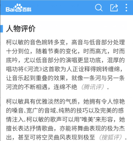 2.腾讯和搜狐给出的人物评价(与第二点一起,应该是她作为超女评委的资质证明)