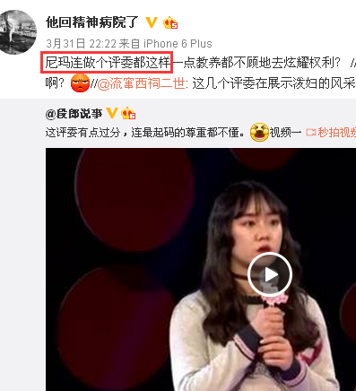 超女选秀评委这个事情,哥一个字的评论都不想说,网友们自己看吧。