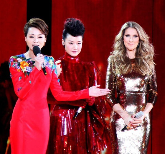 宋老师还曾穿着一身blingbling的红色亮片,站在同样金光灿灿的席琳迪翁边上,有心想说这有点像李宇春,都担心李宇春不会同意。