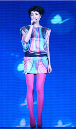 个性天后王菲也不免要迎合一下春晚热烈的气氛,一双连高跟鞋也能一起套上的超弹力玫红色丝袜,让天后成为当晚最闪耀的传奇。