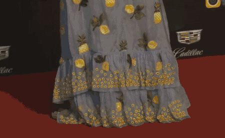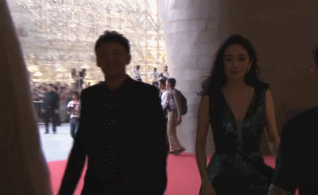 大幂幂也穿了一身Prada深V长裙,可能是领真的开得太低,走红毯的时候杨幂还一路护住胸口深怕走光