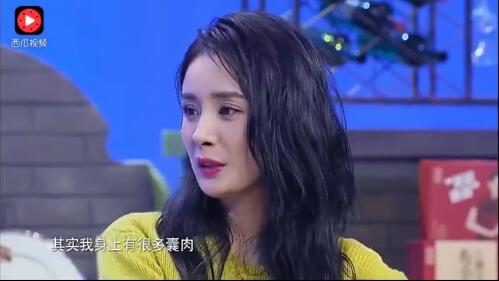 哈哈哈哈杨幂的个性就很舍得拿自己来开玩笑,经常自黑,明明她很瘦,身材也很好,但是在节目里面她自曝自己身上很多囊肉