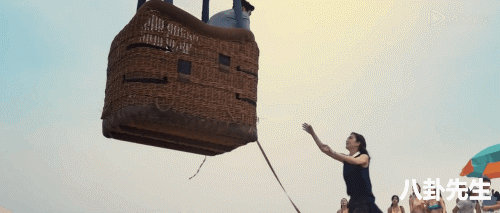 在电影里,杨幂演李易峰的经纪人,李易峰的热气球还没做好安全措施就升上天去了,这时候,杨幂二话不说扑上热气球▼