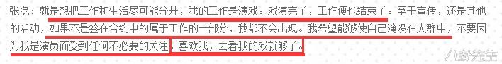 其实张磊之所以不红,还有一个原因。就是他除了演戏之外,几乎绝迹于演艺圈,异常低调。不搞炒作宣传那一套,红与不红他也无所谓,生活很随性。