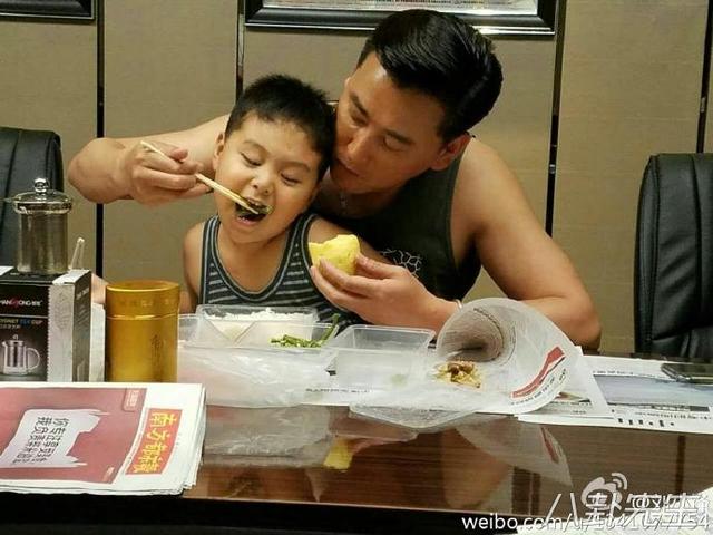 如今他的儿子已经4岁,看看他喂儿子的图片,画面是不是很温馨、很有爱?