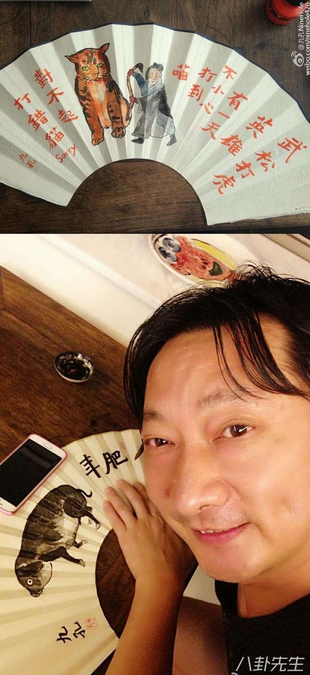 九孔爱好比较文艺,他喜欢收藏,从古董家具到字画应有尽有;他还写得一手漂亮的书法,会画水墨画和工笔画