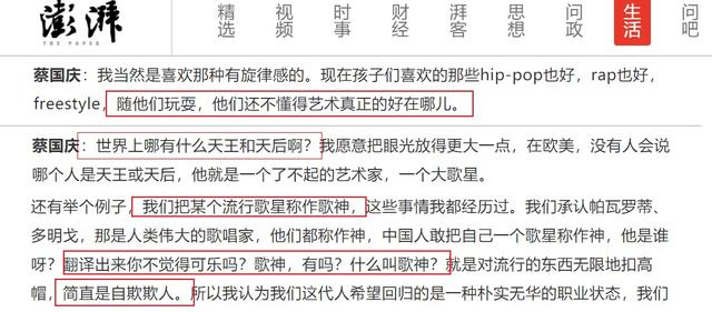 蔡国庆就这么简单一个采访,把很多流行音乐的东西都否定了,但流行音乐正是当下大众更能接受的东西,有什么不好的?