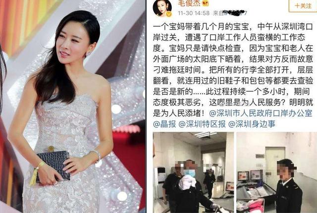 她炮轰深圳海关,说自己带孩子过关时遭到刁难,工作人员态度蛮横,故意拖延时间导致安检时间长达1个多小时,还把两位海关人员照片未经处理就放到网上。