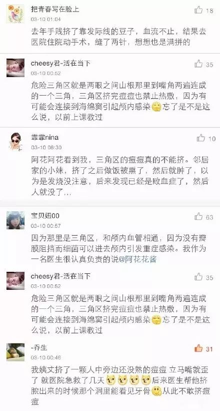 百度查证一下,好像是真的!而且,身边人还有真实案例! 想想曾经挤过的痘痘,忽然有一种是死里逃生的感觉,赶紧发出来给大家科普一下!!