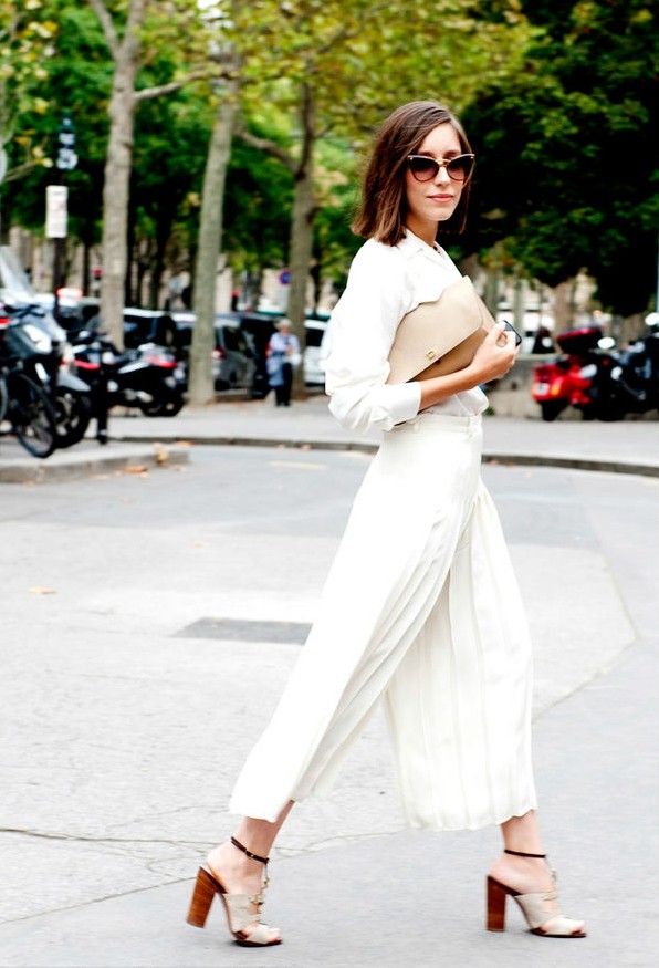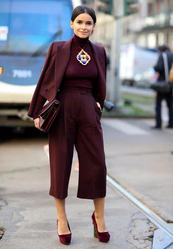 穿阔腿裤想要有最佳显高效果一定离不开高跟鞋了,粗跟与阔腿的结合使你增添了多种时尚的可能性,鞋跟与宽阔的裤腿不会显得头重脚轻,如果鞋子细节感强,阔腿裤可以选择单色的简单款式,让你具有别样的休闲自在。