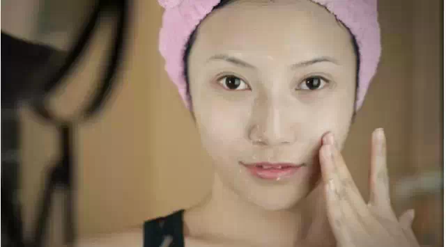 再用柔软的洗脸海绵,在脸上打圈圈,认真清洁。