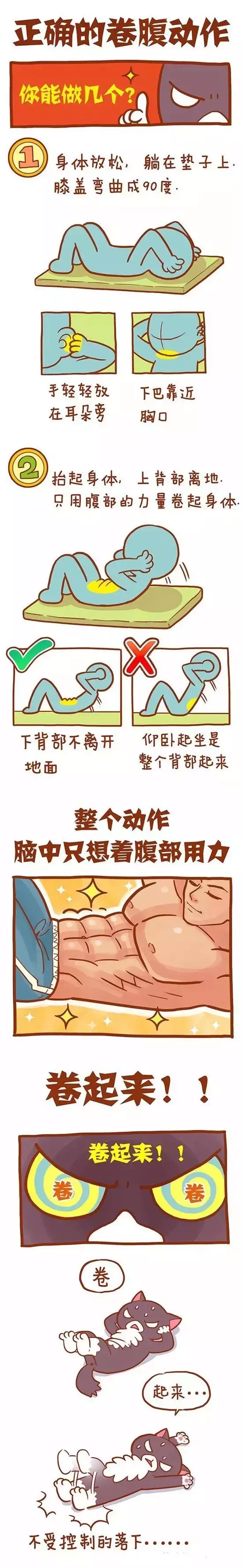 正确的卷腹动作演示: