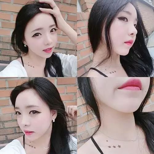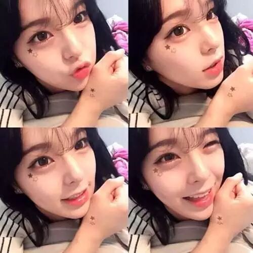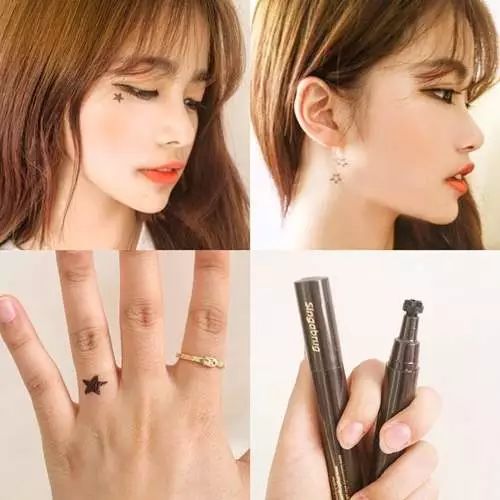 有时候觉得韩妞的流行概念很可爱,比如之前的爱心刘海,呵呵,不过是不是不敢尝试呢?这次韩国新起的星星印记流行跟日本的光感纹身贴有点类似,唯一不同地方在星星是“盖”上去的~