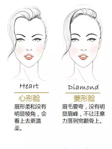 6.菱形脸:眉毛要弯,没有明显眉峰,不让注意力落到宽颧骨上。