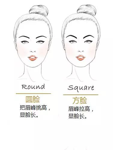 3.圆脸:眉峰挑高,视觉上让脸显长。