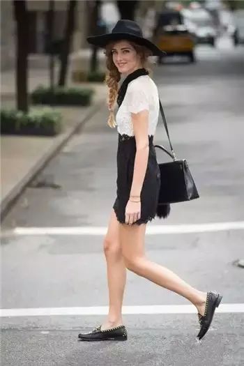 法式优雅风:高腰蕾丝裙 乐福鞋的搭配,更多一点别致的优雅