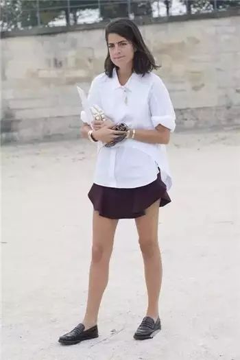 上班族标配:白衬衫 mini裙 平底乐福鞋
