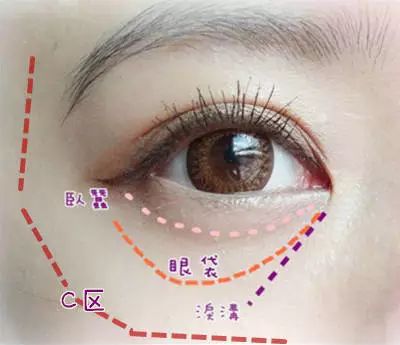 眼下部分的手法:用刷子放平,以Z字形向下刷,刷到笑肌为止。(微笑时眼下轻微凸的位置就是笑肌)