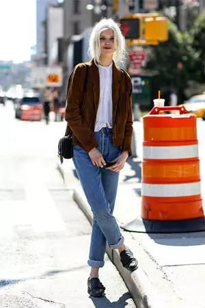 选择九分裤或挽一个裤腿,总之露出一截腿更俏皮,没那么沉闷~