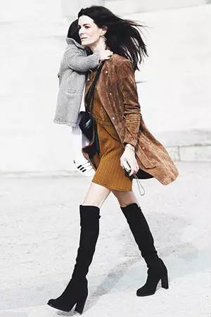 觉得露腿太冷,就穿上过膝长靴。