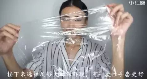 用保鲜膜将双手紧紧包裹起来,或者直接使用一次性手套。