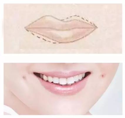 主要是搞出一个唇峰来。如果你的人中较长,就往上画一个有弧度的唇线,如果人中较短,就拿遮瑕遮盖一部分嘴唇。