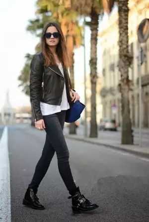 紧身牛仔裤也OK,只是腿不够逆天的妹子最好选择与鞋子颜色相近的仔裤来拉长下身。