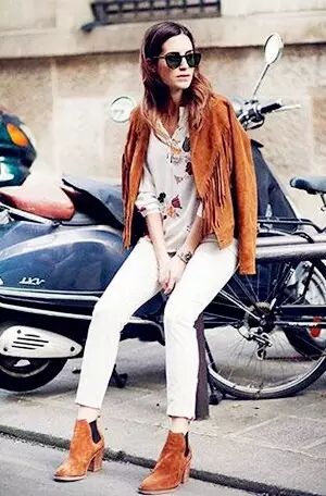 麂皮是今年的热门,这身的衣服、鞋子都是同样颜色和材质,呼应的很亮眼!,内搭和裤子无论黑白都会很好看。谁让驼色就这么百搭~