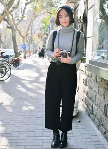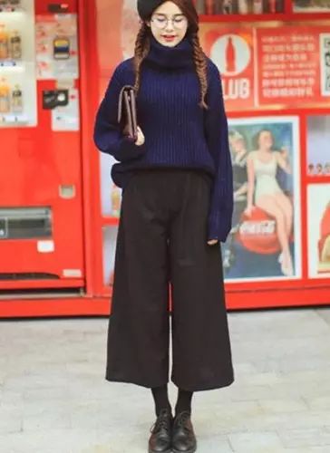 高妹可以选择更短的阔腿裤,注意保持鞋子、打底裤、阔腿裤颜色的协调性。
