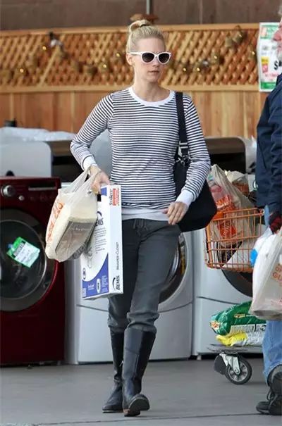 刚过膝盖的中长裙很难驾驭,尤其是配中腰靴子,会分割你的腿。大表姐这么高这么瘦才能看。