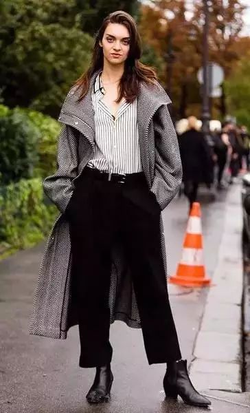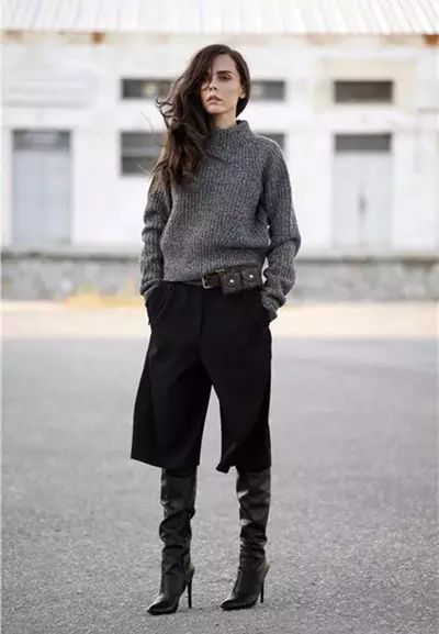 八九分长的阔腿裤都可以,正好到你的靴子上方即可。