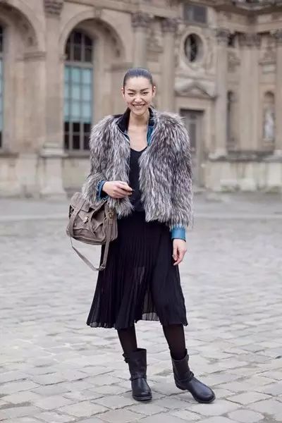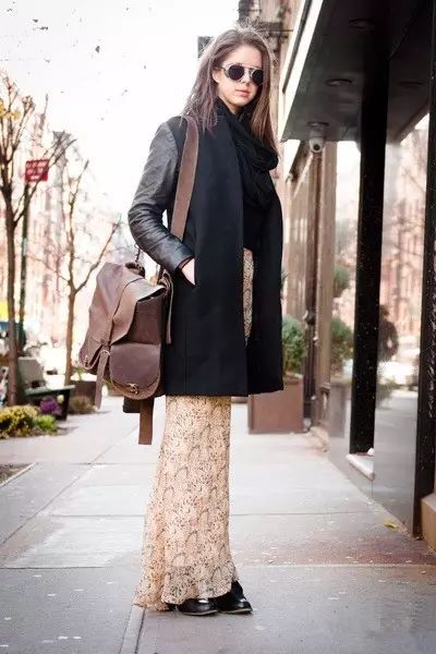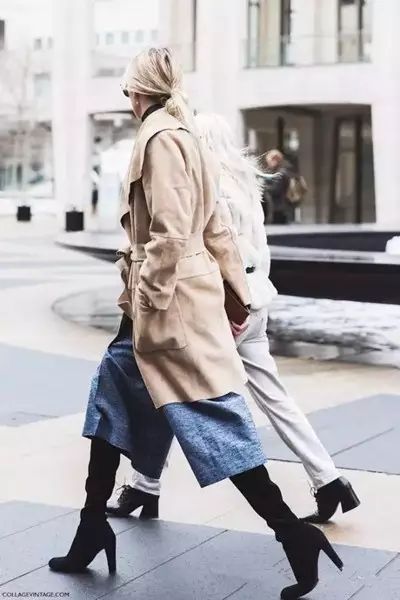 还有连身长裙!这种裙子未及脚踝,上衣又比较长的,请穿有跟的靴子。