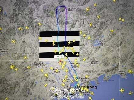 机长发出广播通知后10分钟,CZ3739返航,备降广州白云机场。