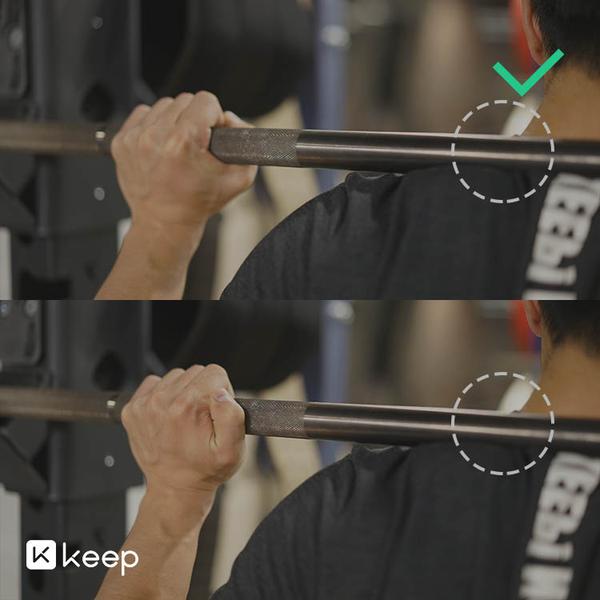 如果你存在耸肩的情况,杠铃很容易就会向你颈骨的方向滑动,也就是一些人深蹲脖子难受的原因。