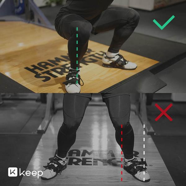 只要保证膝盖和脚尖的方向一致,整个脚掌踏实地面,重心尽量落在脚掌中间,找到臀腿发力的感觉就可以了,不要在乎膝盖和脚尖的相对位置。