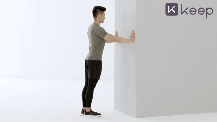 比如练胸,标准俯卧撑不容易找到感觉,可以先做一组「靠墙俯卧撑」。