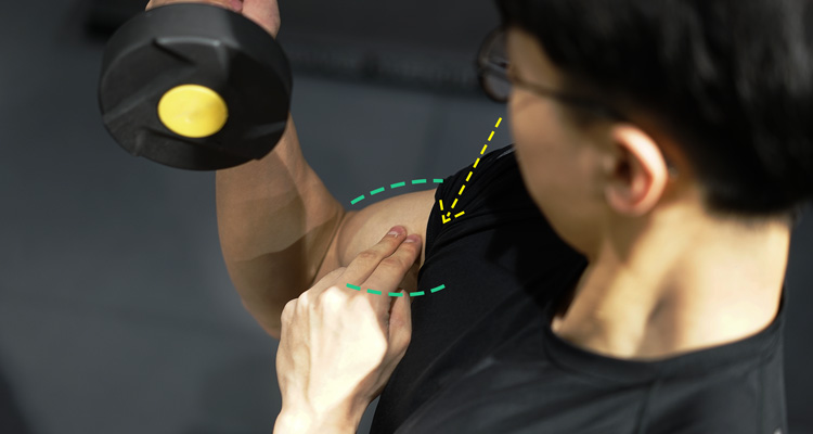 这是一个很简单的方法,比较适合于单侧运动。例如你在左手哑铃或者弹力带肱二头肌弯举的时候,先将目光集中在左侧的肱二头肌上,然后用右手的食指和中指轻轻放在左侧肱二头肌上。
