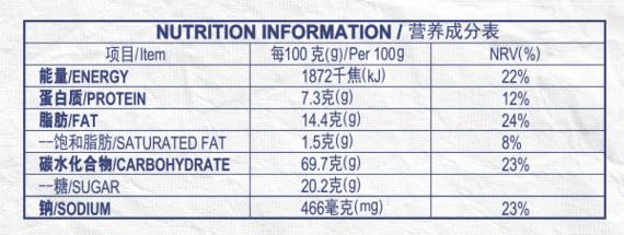 营养成分表最右一列,NRV(%)的意思是:占据一天推荐摄入量的比例。比如,吃掉这几片饼干,所含的脂肪占用了全天份额的 24%,将近四分之一。