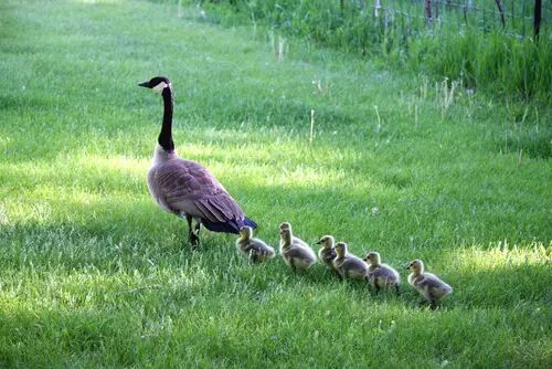 加拿大雁雏鸟跟着妈妈,因为妈妈是雏鸟们出壳后第一样看见的动物。图片来源:shutterstock