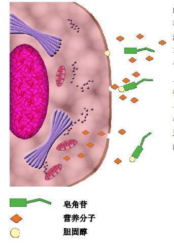如上图所示,丝兰皂苷作为固醇物质,是一种非常强大的表面活性剂,可以改善细胞膜的通透性,并且能与动物肠道上皮细胞膜上的胆固醇结合,形成不溶物,产生 50 埃(5nm)的小孔,这种小孔可以允许大营养分子通过细胞膜进入细胞质,实现提高氨基酸等营养物质的吸收,同时丝兰多糖作为益生元,可以促使动物肠道菌群丰度更高,均匀度相对偏高。并且丝兰提取物与氨和硫化氢等有害气体有极强的结合能力,在肠道中结合氨形成无害化合物,被肠道细菌充分利用,产生菌体蛋白,进而也更有利于营养物质的吸收。这也是丝兰提取物能提高蛋白利用率的理论基础。