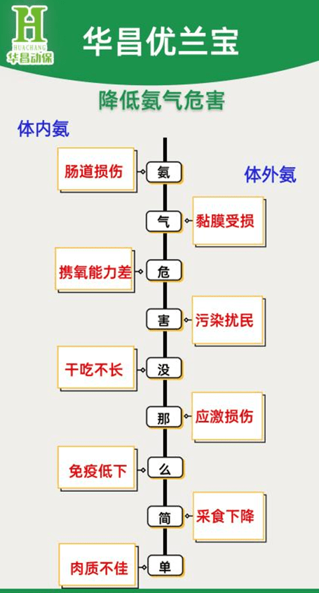 如上图所示,猪场氨气、硫化氢等有害气体的危害远远不止“污染扰民”“环境污染”这么简单。在养殖管理中,除了合理利用通风管理,也要重视猪群饲料营养角度,缓解“氨气危害”。例如采用低蛋白日粮、日粮中添加功能性产品例如植物饲料添加剂丝兰提取物,以华昌优兰宝为例,富含丝兰皂苷、多糖、多酚三种成分,协同作用,可有助于降低猪群体内外氨气、硫化氢等有害气体的干扰的同时,也减少猪场“污染扰民”等问题。