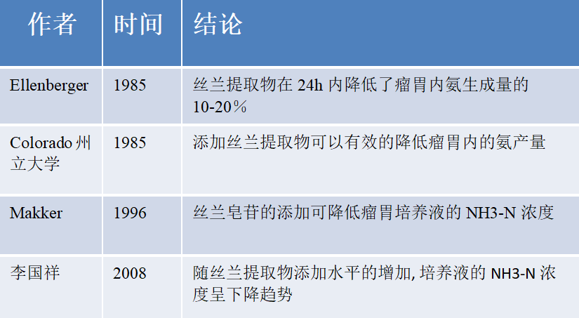 4、日粮中添加丝兰提取物,可以合理控制瘤胃原虫数量,有助于提高有益细菌繁殖率,促进瘤胃发酵,增加微生物蛋白合成量。而且丝兰可以帮助调节瘤胃内氨的释放和产量,提高了蛋白饲料的利用效率,减少氨氮排放,有助于奶牛场实现节能减排的措施。下面就这些功能做以研究:
