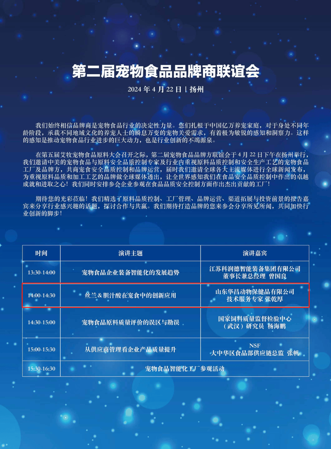 第五届中国国际宠物食品原料大会,华昌动保期待您的到来!