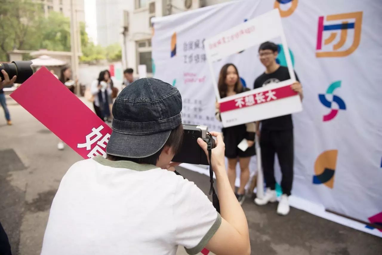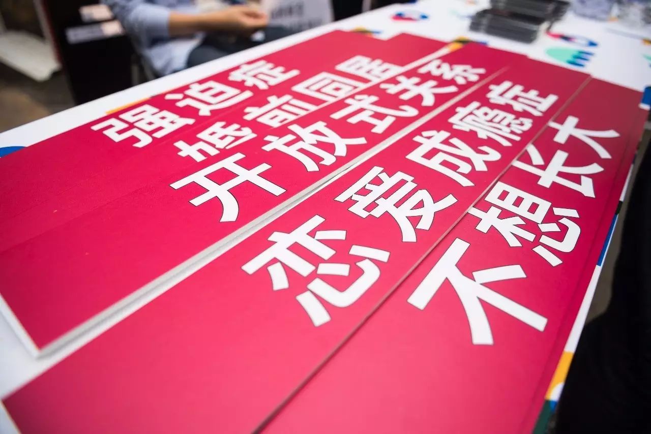 而在拍照墙前,有情侣大大方方拿着“婚前同居”亲了个嘴儿,有男生一口气举着“单身”“工作狂”“隐形自恋”摆着超酷的造型拍照,还有小伙伴排队等着抢拿“恋爱成瘾”的牌子。